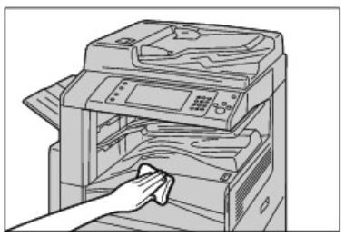 装置のカバーを,ローラーを回しながら水を湿らせた柔らかい布で拭き取ります。