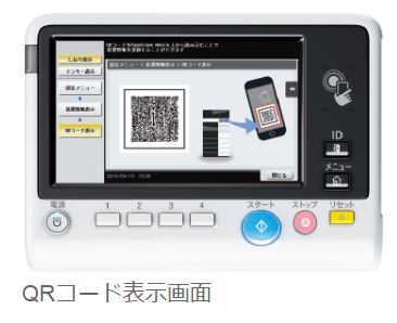 ②「PageScope Mobile」というアプリを利用すれば、本体パネル上に表示したQRコードを読み取るだけでモバイル端末と複合機との無線設定が完了するのでより手軽に使用することができます。